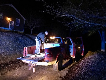 Monday night at approximately 8:45, Grayson County Sheriff’s Office Sgt. Zane Greer, Deputies Rick Mehlbauer and Sean Fentress and Constable Alvin Dockery responded to Beaver Dam Road (Hwy 62) after a property owner told Central Dispatch he was following a red Ford F150 truck that ran over his fence. The incident was reported to have taken place on Old Dog Creek Road.